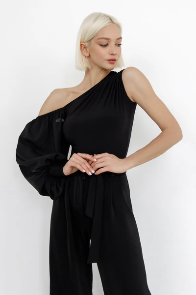 Body jest niezwykle uniwersalne i plisowane, co zapewnia atrakcyjny wygląd. Elegancko leży, a krój bez rękawów i na jedno ramię sprawia, że jest nieco bardziej kobiece niż tradycyjne fasony.