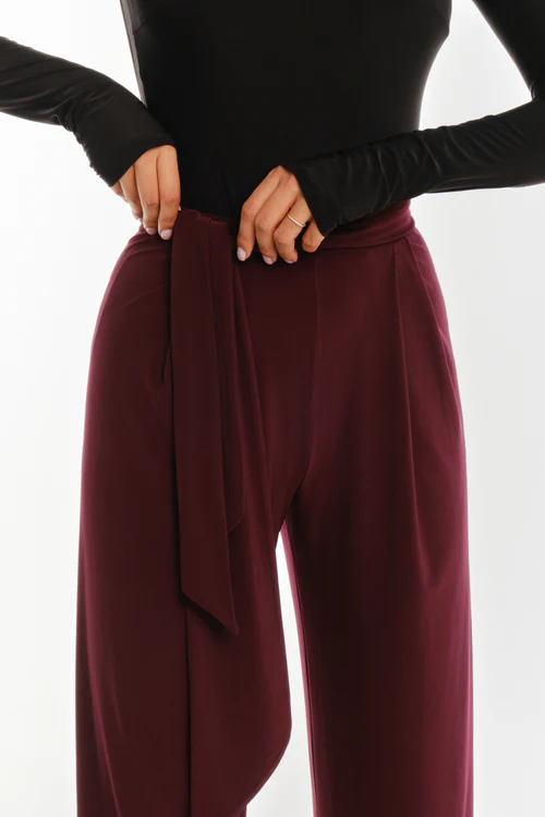 Stylowe spodnie Mason w pięknym kolorze Mulberry. Prosty, luźny krój. Pasek z przeszyciami.